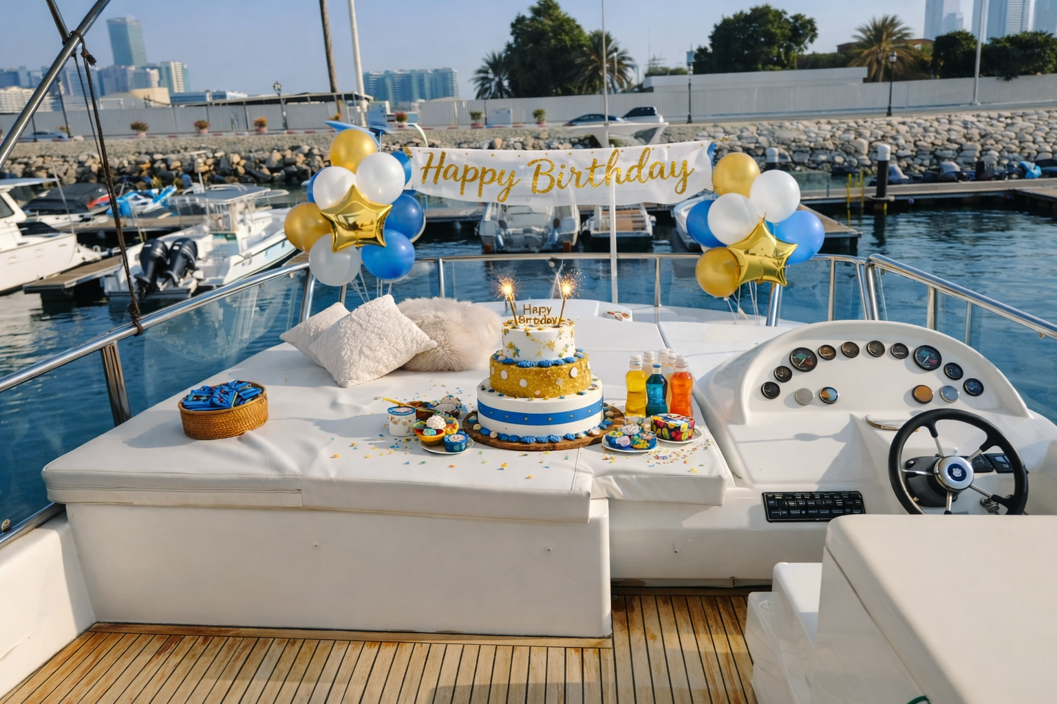 Our birthday yacht packages in Abu Dhabi cover the main marinas and the most popular cruising islands. Choose your departure point, pick your route, and we’ll handle the full birthday setup onboard.